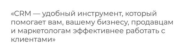 Это — удобный инструмент, который помогает вам, вашему бизнесу, продавцам и маркетологам эффективнее работать с клиентами и больше продавать. Этакая замена палки-копалки (те самые блокноты и таблицы с вечным бардаком) на автоматизированный станок. Но если выбрать неправильный станок, слишком усложнить его (когда настройка «станка» занимает больше времени, чем сама работа) и «забыть» (или забить) объяснить работникам, как им правильно пользоваться — результаты работы будут предсказуемо отрицательные.