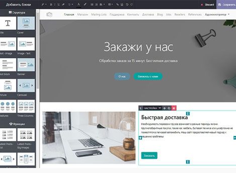Создайте свой интернет-магазин с помощью конструктора сайтов. Интуитивно-понятный интерфейс, без помощи программистов. Перетаскивайте нужные блоки, заполняйте контентом.